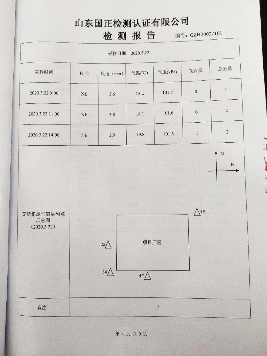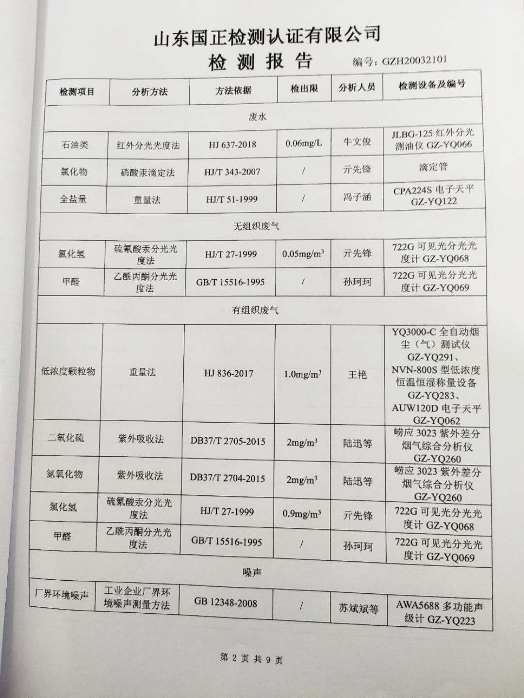 | 主要內容 | 與山東國正檢測認證有限公司簽訂環境檢測協議,委托第三方機構對我公司進行環境檢測,檢測頻次、地點及項目等與環評報告要求一致。 |