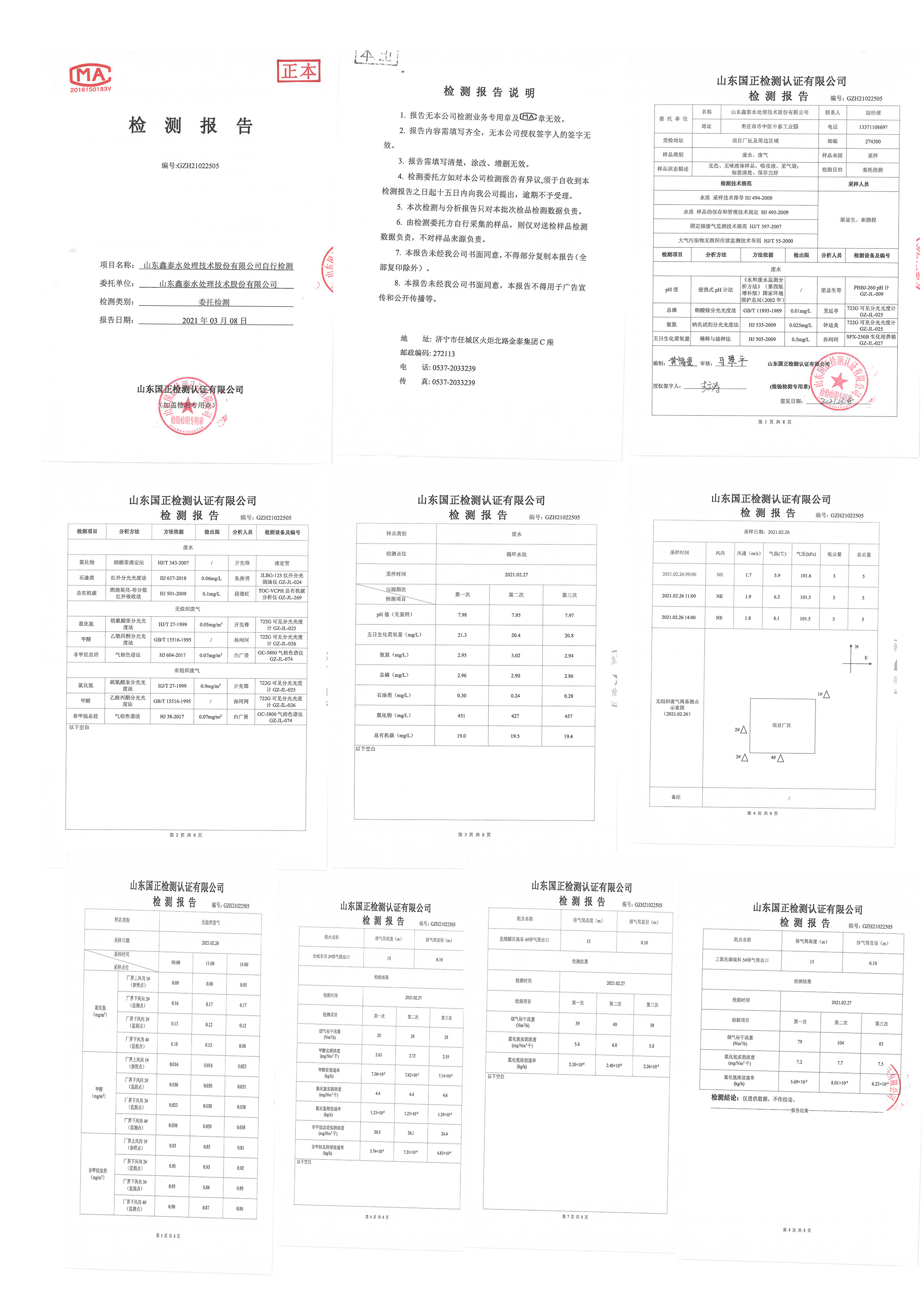 山東鑫泰水處理技術(shù)股份有限公司2021年環(huán)保監(jiān)測公示